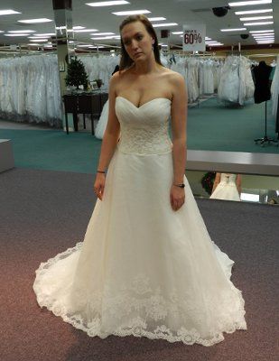 I ordered my dress this past weekend!! I am beyond excited. Here is a picture of me in the sample at the store. It is too big, but you get the idea
