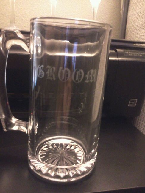 So I'm really really proud of them. I bought them at the dollar tree, etched them myself, and glittered the bottom of the girls glasses myself. Something that would have cost me around $250 to get each individually cost me about $25. What do you...