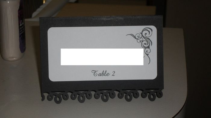 This is our alternative to our guest book. We plan on placing one on every table to serve as table numbers & a guest book. Our wedding theme is Damask , and our colors are red,black and white. My FH cut the pattern on the paper, and he hand drew and...