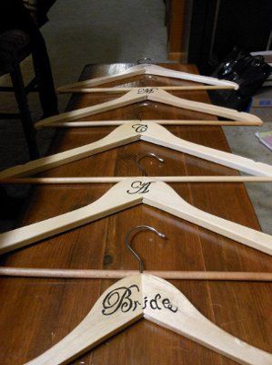 Saw so many eaxmples of hangers for you bridemaids & MOH's dresses customized. I thought hmmm i could so do thaT! They were charged like $20 per hanger personalized. So i went to Bed, Bath, & Beyond found wooden hangers ($4.99 for 8 which is actually...