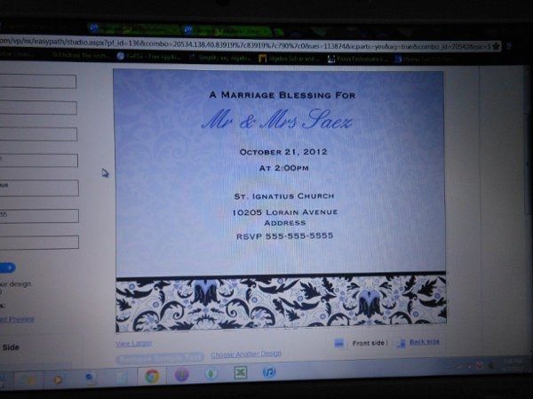 I'm looking at invitations on vista print. Our marriage blessing is not going to be formal but I will be in my dress and husband in a tux. were not celebrating afterwards. Just a nice Marriage blessing Ceremony. Family will be their and a few close...
