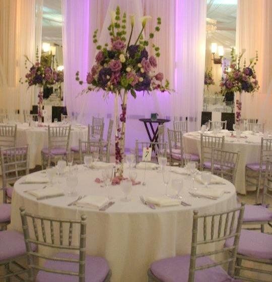 I need your opinion for the tables... My centerpieces flowers are going to be white and purple/lavender. We will have silver chiavari chairs, white tablecloths with lavender napkin! My question is: WHAT COLOR SHOULD I PICK FOR THE CHAIR SEAT...