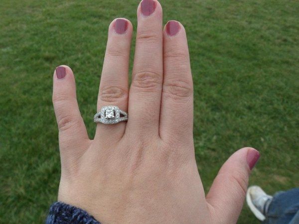 Hi WW Ladies!! I am fairly new to this forum and I haven't seen one of these posts and I figured you wouldn't mind bragging about your bling!! I am in love with my ring (FH and I are going to order my band tonight). The center stone was from my mom's...