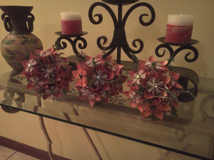 So I can say I finally finished with my centerpieces...I posted a pic of them days ago but I hadn't finished them since I had to make 11 of them. After burning my fingers and all I am finally done... Here's a pic for those of you who didn't see my...