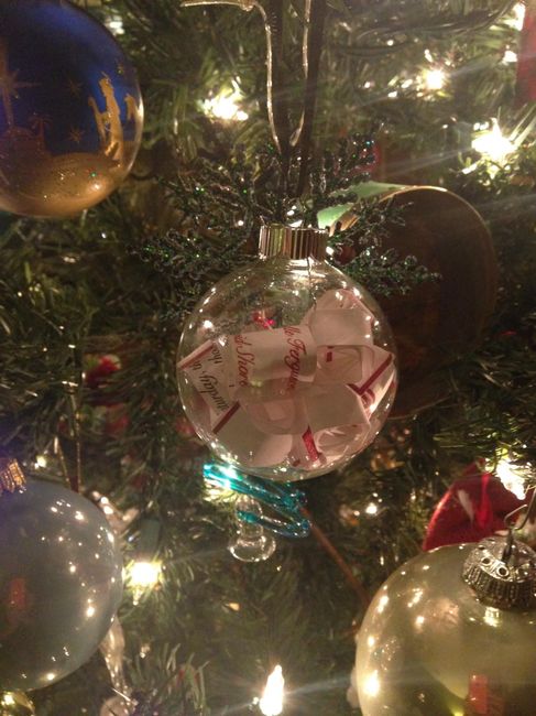 One of my coworkers who went to my wedding gave me a Christmas gift today. It was a clear ornament with my wedding invitation inside! I thought it was a pretty cool idea and gift.
