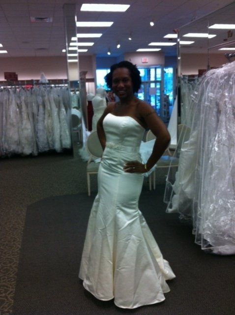 OK, so when I chose my dress in early August is was a little tight, and pulling in the hips. I was also at my heaviest weight, outside of being pregnant, at 174 pounds. So when the saleswoman suggested I order a size up, I told her absolutely not....