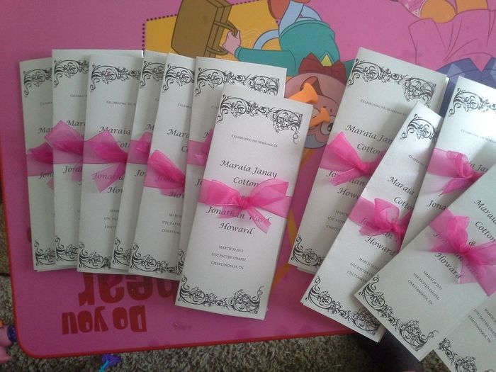 So I went around and priced for programs printed on Shimmer Paper. For 125 I would be charged around $160.00. So I took things into my own hands and found the shimmer paper at Office Depot for 11.00 a pack. I then found a sample template for the...