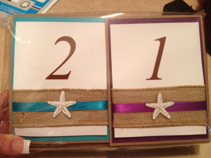 Our colors are navy and fuchsia so we went to Hobby Lobby and bought wooden numbers and glued them to a wooden square. We sprayed them with Elmer's spray glue and then poured fuchsia glitter all over them. We did it a few months ago so some of the...
