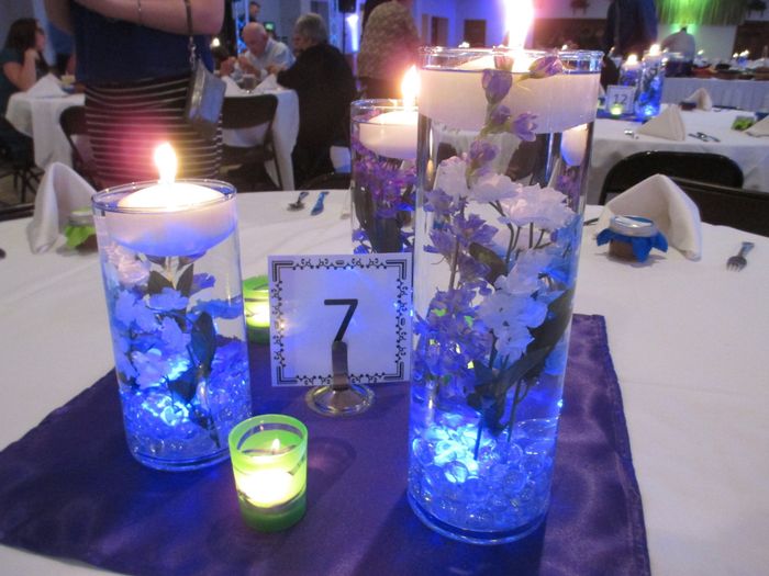 Has anyone had experience with floating centerpieces? I was thinking of doing long, thin clear vases filled with water with pebbles at the bottom and lilacs floating in them, with a tea-light on top (Saw it on Pinterest!). But I'm concerned about 1....