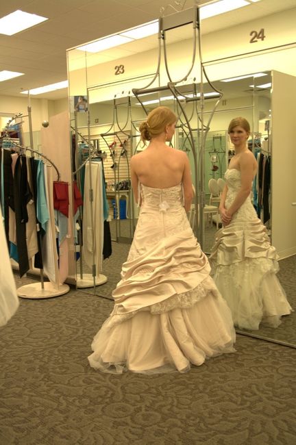 I am upset over the fact I let the salesperson talk me into something I aint happy with. Now I lost my receipt. I though it was with my stuff but it must of been in my purse and got thrown out. I cant afford another dress so Im pretty much stuck with...