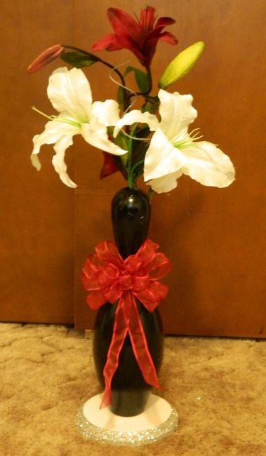 Just thought I'd share with you ladies our centerpiece. My FH wanted something bowling in our reception since we are avid bowlers and met in a bowling alley. So this was my take on his bowling theme!