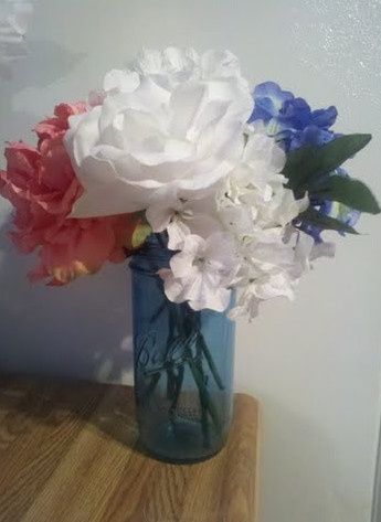 We are DIYing our centerpieces for our outdoor, equestrian center wedding. So far we have the dyed mason jars and anticipate the jars looking like the mock-up below (minus the blue flower). We will have simple burlap runners that were donated by a...
