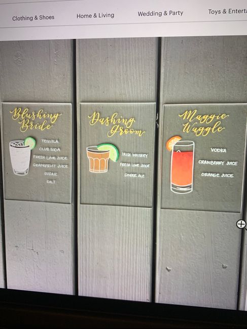 We got the open bar at out venue and I have seen those signs with beverages like this one? Any ideas 💡 on the drinks? On the menu bar? On names or what are you brides doing?