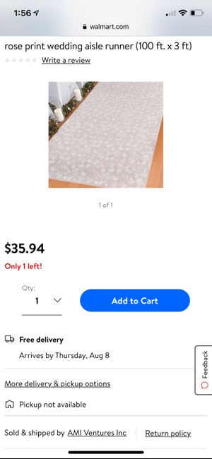 FOUND THIS AISLE RUNNER AT MY WALMART AT $10 but I am afraid that the fabric is so thin that maybe with my dress could move the aisle. I was not even thinking of buying an aisle runner for the church but its a deal, but its a deal that can be...