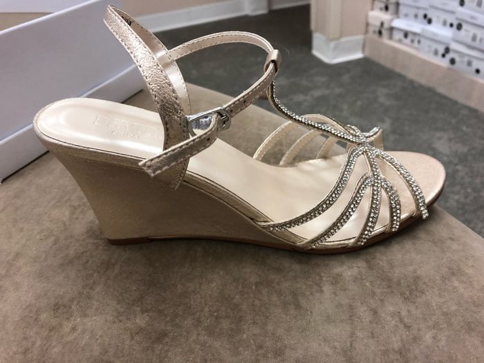 These are mine Badgley Mischka wedges I decide to go with these because I want to feel comfortable since I plan on dancing alot and I love high heels but I didn't want to having to sit out of dancing because my feet were in pain. What do your weeding...