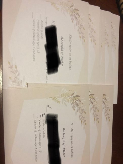 Just wanted to share as kind of a warning, what I wish I had done. We ordered our invitations from Vistaprint and the front and back were to be colored and printed on. They were packaged in sets of 20 which I opened as I went (stuffing them to mail)....