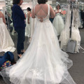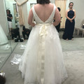 2447 days agoI got my dress alterations done! I had a V neck before and I wanted it to be a scoop neck but they didn’t have the same material so the seamstress had to find a similar material and lace and pin it on. I also added a 9 point bustle and a ribbon! I...