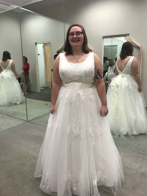 I got my dress alterations done! I had a V neck before and I wanted it to be a scoop neck but they didn’t have the same material so the seamstress had to find a similar material and lace and pin it on. I also added a 9 point bustle and a ribbon! I...
