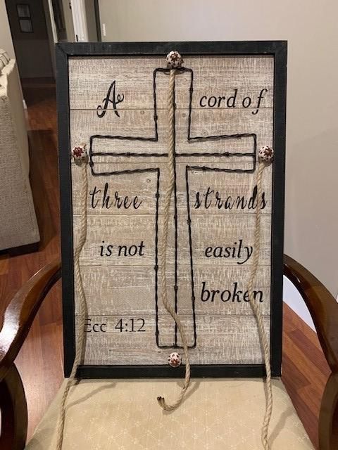 Finally finished our cross for our cord tying unity ceremony. I bought the frame, knobs, and cross from Hobby Lobby, and used a cricut to stencil the words. Unity cross