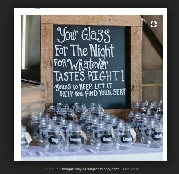 Has anyone ever done this or seen this at a wedding? How do you feel about it? I have to provide the cups for my bartender and really didn't want to do disposable plastic because it's so wasteful. Glass seating chart