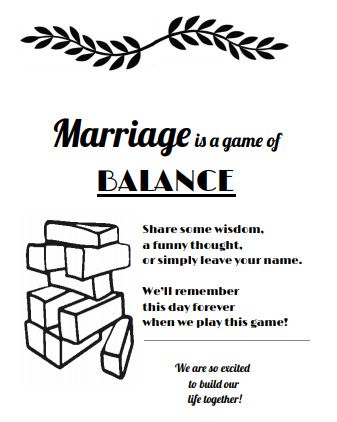 We are having a jenga guestbook where our guests can sign their name on a jenga block. For the sign to explain that this is our guest book, I am working on the design of something to print and put in an 8x10 frame on the table. What are your...