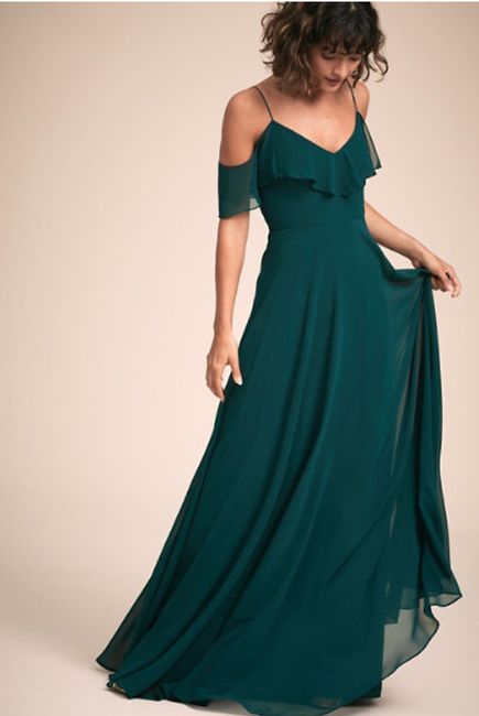 Hey! Bridesmaids are all wearing Jenny Yoo Caspian Sea. The wedding is in late October and its going to be formal, but not black tie. The color theme is jewel tones. Rich deep colors. Thinking navy or black suits. What do you think? Here is one dress...