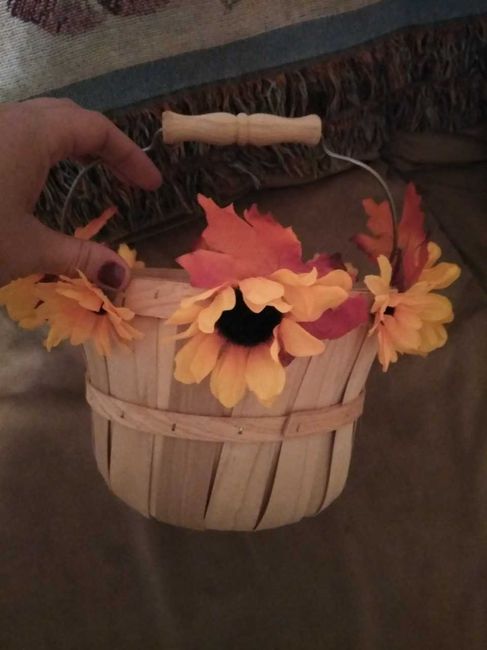 My bouquet Flower girl basket I feel like my bouquet is missing something, but I am not sure. It has too much of a floral arrangement feel to me instead of a bridal bouquet. Any ideas? Does the basket look ok or did I overdo it on the flowers (they...
