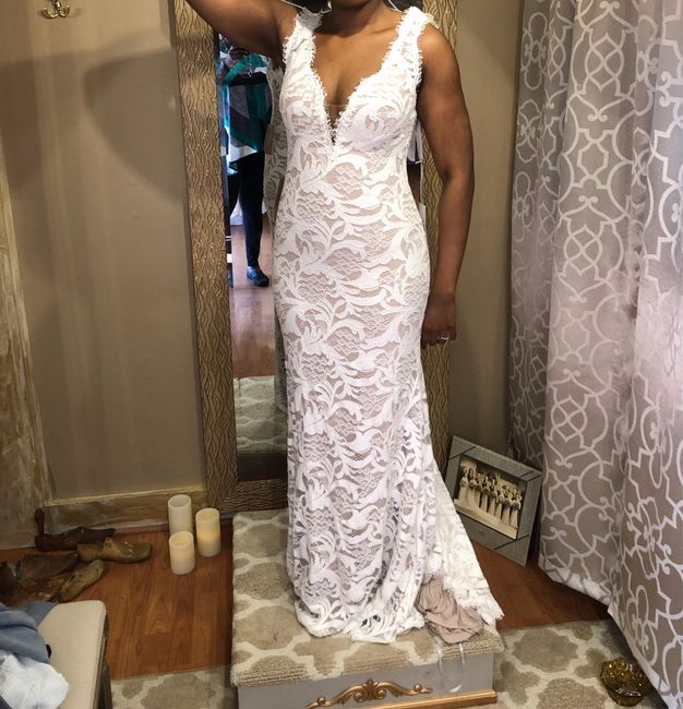 I purchased my dress from BHLDN. Its is the Wtoo Sandrine dress. Curious to see if anyone has tried it on or any other BHLDN dress. I hide my face Im a little paranoid fiance is going to run across this somehow... Front Back - needs to be altered ...