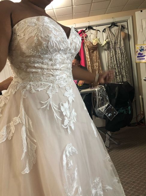 I’m apprehensive to post these but I need a second opinion. I absolutely LOVE my dress. It’s the only dress that I tried on and it was love at first sight! When I picked it up in my size the lady at the shop was amazed at how perfect it fit and I was...