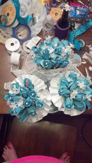 What DIY projects have you all done? We are doing everything from shower invitations, wedding invitations, bouquets, boutonnieres, fg baskets, ring bearer pillow, and centerpieces..Can I see what you ladies have done?