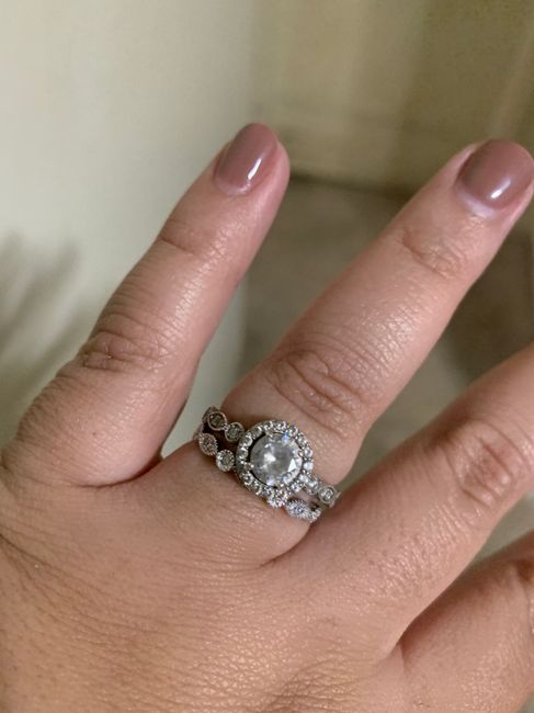 I saw a post the other day and now I can’t find it! My wedding band came in the other day. I love it. It doesn’t match perfectly, but I think it compliments my ring so well!