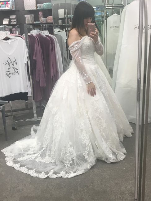 I found my wedding dress!!! I never thought I would like ballgowns, but I’m glad I tried on the dress my bff picked out for me. I often feel self conscious when my arms are out, but not in this! What kind of veil should I get?