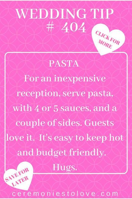 Hi! I found this post on Pinterest and I was wondering what you guys thought. Would you guys go with the usual steak, chicken or salmon route; or would you guys think pasta was filling/ "classy" enough? Of course it'll be different types (shrimp,...