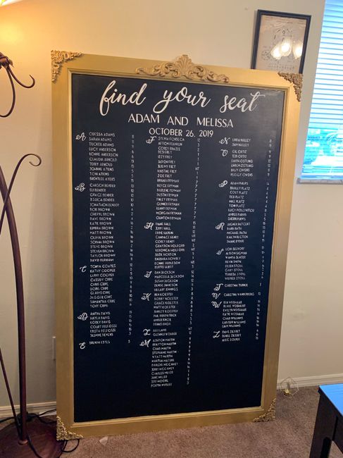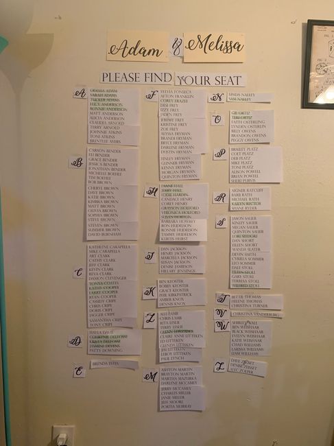 I’ve spent HOURS tonight putting together what our seating chart sign will look like. It was stressing me out since I’m a DIY bride and I couldn’t picture it. So here is the first draft. It’s going to be on a 5’x3’ chalkboard.