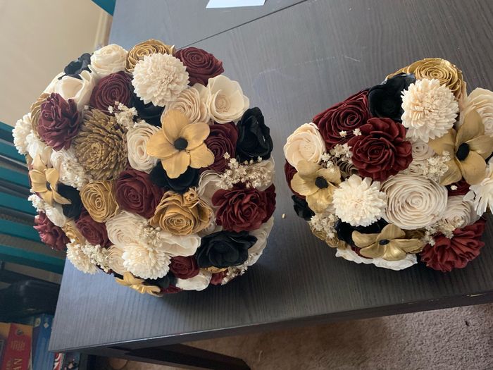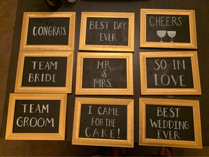 I’m trying to do as much DIY as possible but still try to make it look professional. Also made our menus and programs as well. Colors are gold black and burgundy. I think I’m over thinking how they look.
