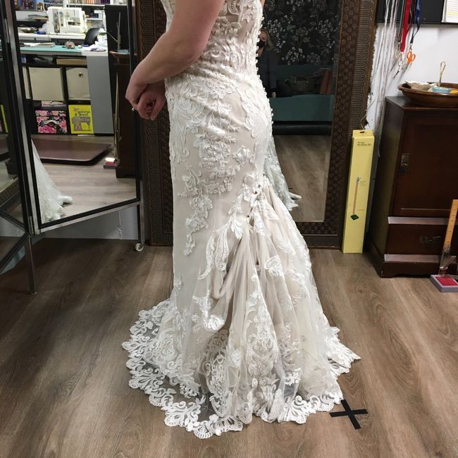 Had my first fitting this weekend. Relieved that I still have time to loose weight *phew*. But didn't think choosing a bustle style would be so hard. Opinions?