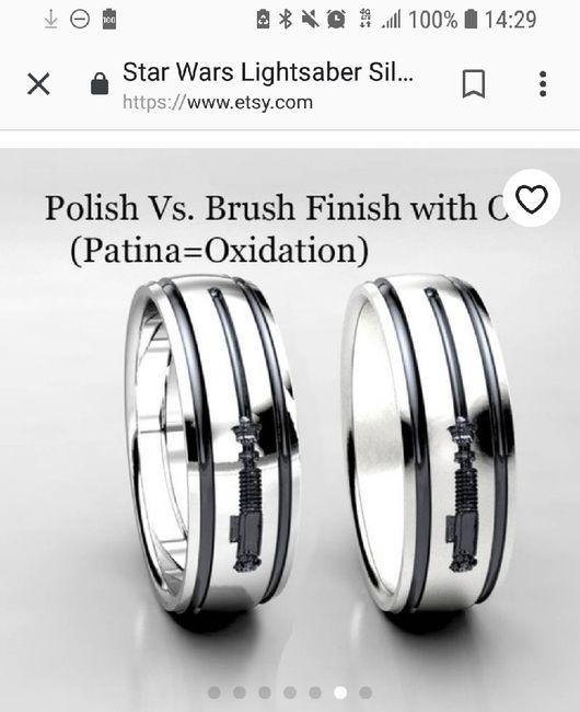 We ordered these rings from Etsy and they came today! They have a subtle Star Wars theme (the sayings are from one of the movies). I already have a band that matches my wedding ring but we wanted to get matching rings. He doesn’t wear any jewelry so...