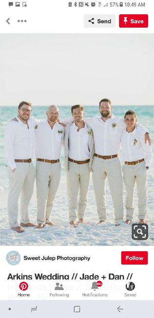 I'm not very familiar with male attire, so I'm trying to find a good starting point for what my groom/ his groomsmen should be wearing. For some background, our wedding is in October on the beach and reception in an aquarium. Our colors are dark teal...