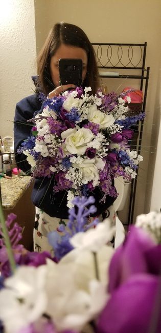 20 dollars for this! All courtesy of my local dollar tree. Will be adding eucalyptus and more flowers for a teardrop shape, so probably 5 dollars more!