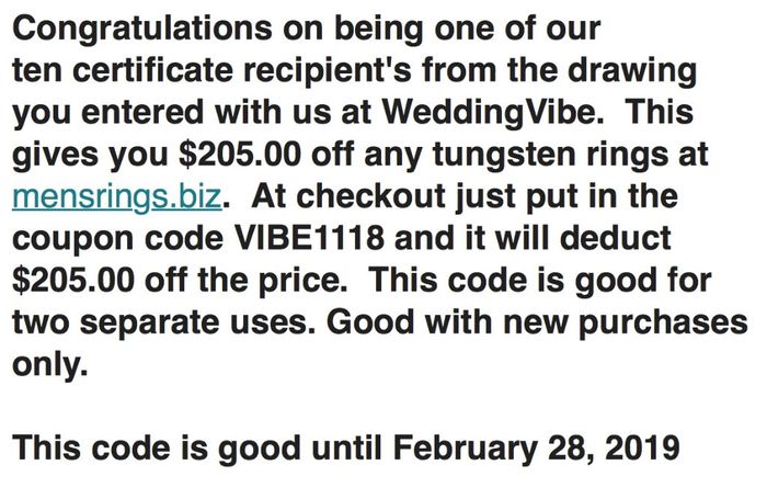 My FH today won a $200 from a show for the website https://mensrings.biz I checked out the site and it makes us very suspicious, though the people we got the prize from was from a pots and pans (true) company. I also checked out thee website's...