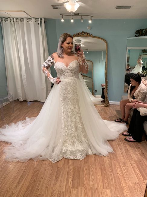 I am so excited! I drove over 2 hrs to pick my dress up and I am so pleased! I still need some alterations, but this sizing gave me a better vision of what my dress will look like!!! I have a picture with the over skirt and without!