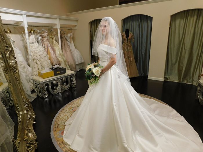 What kind of dress and veil combo are you wearing? Are you wearing a blusher or just a veil? Let's show some pics!! I have an illusion applique dress and I'm wearing a cathedral veil with no blusher