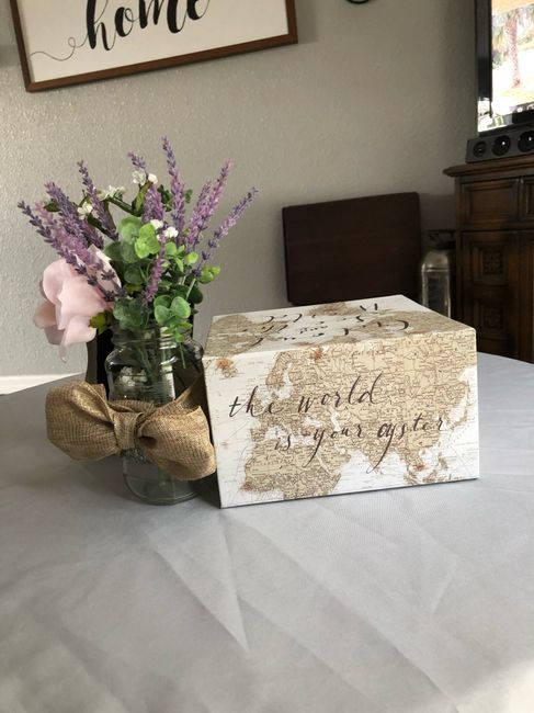 When we come back from our elopement, I’ll be having a causal back yard celebration. Our theme - vintage travel “love is a journey” check out my trail center pieces I put together. I will be using real baby breaths for the flowers. The pictures will...