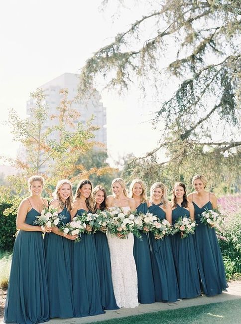 Anyone have ideas on a good dress color for my mother to wear? Our wedding will be greenery-heavy, with mostly white flowers and gold accents throughout. The bridesmaids will be wearing the "Ink Blue" dress color from Azazie, but we're at a loss for...