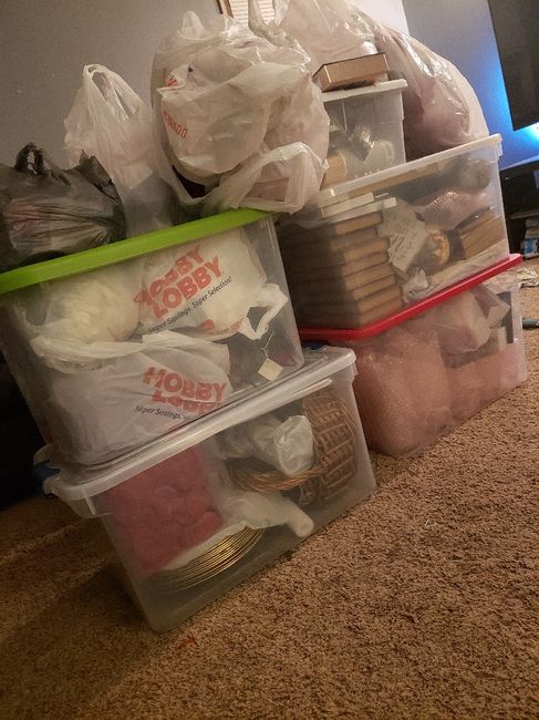 This is some of my DIY projects that I have done for our wedding this summer. I still have a few more small projects that aren't pictured. ⬆️Our Guest sign in table decorations. Just finished them today. Got half this stuff from goodwill and...