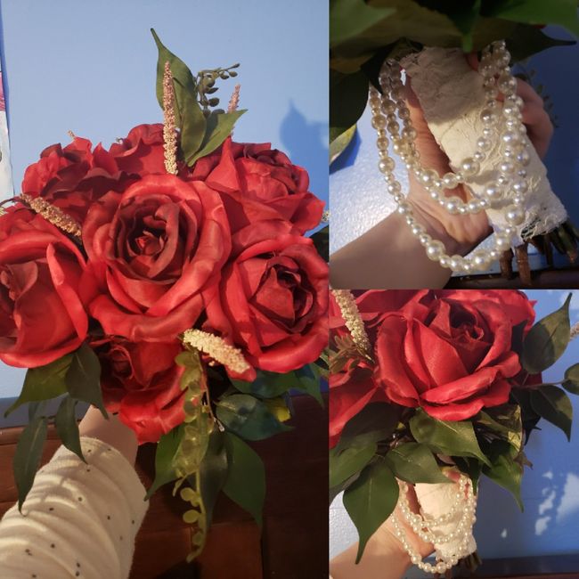 Worked more on my wedding bouquet. The pearl garland was too long so I had to make some adjustments. Then the lace is from my actual wedding dress, it was the piece cut off from alterations. Now to work on my million other wedding DIY projects....