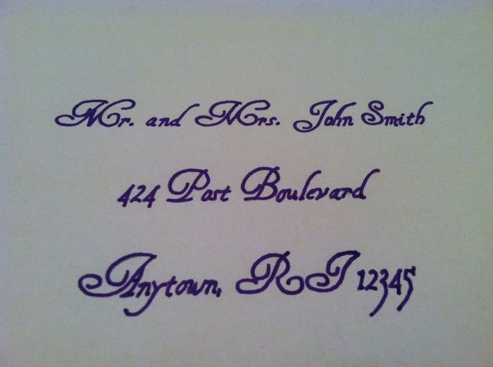 I ordered my invitations thru VP and decided to use just the plain envelopes that they provide for free, but wanted to "dress" them up a bit. The pictures below don't really do it justice, but thanks to Mrs.O I have been handwriting all of the...