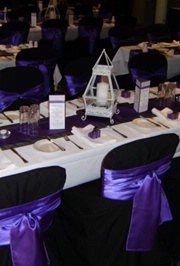 This is what I want, I want black chair covers with purple sashes, but with white table clothes and purple table runners. Do you think this will be okay? The chair covers are not included with my hall so I am ordering them from a different company....