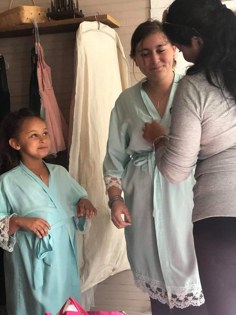Hey guys, I had wanted a partition so FH couldn't see me until I was walking down the aisle. I had so much going on I just kind of gave up on ther idea. But then FMIL surprised me and bought all the fabric plus had the poles and cable put up for it...