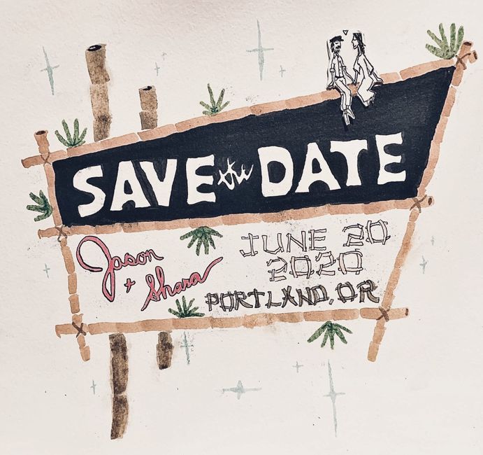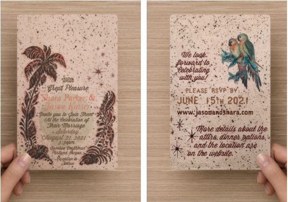 I just wanted to share my invitations! I had a friend draw up the birds and palm trees and we plugged it into VistaPrint. I am so obsessed! Anyone else have DIY Invitations? These are front/back.
